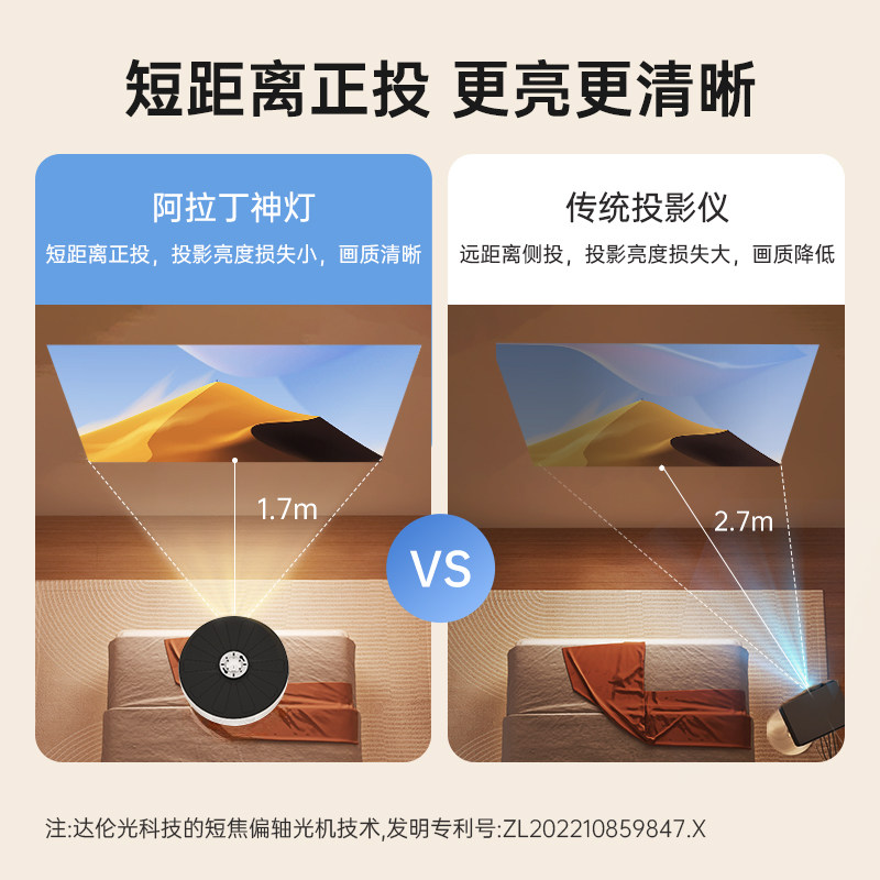 【政府补贴】达伦阿拉丁神灯X30pro+吸顶投影仪超短焦家庭影院家用高清手机投屏卧室大屏智能投影机【包安装