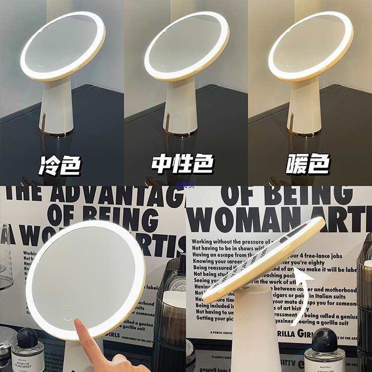 化妆镜带灯台式女生宿舍桌面补光小镜子卧室梳妆台台式梳妆镜