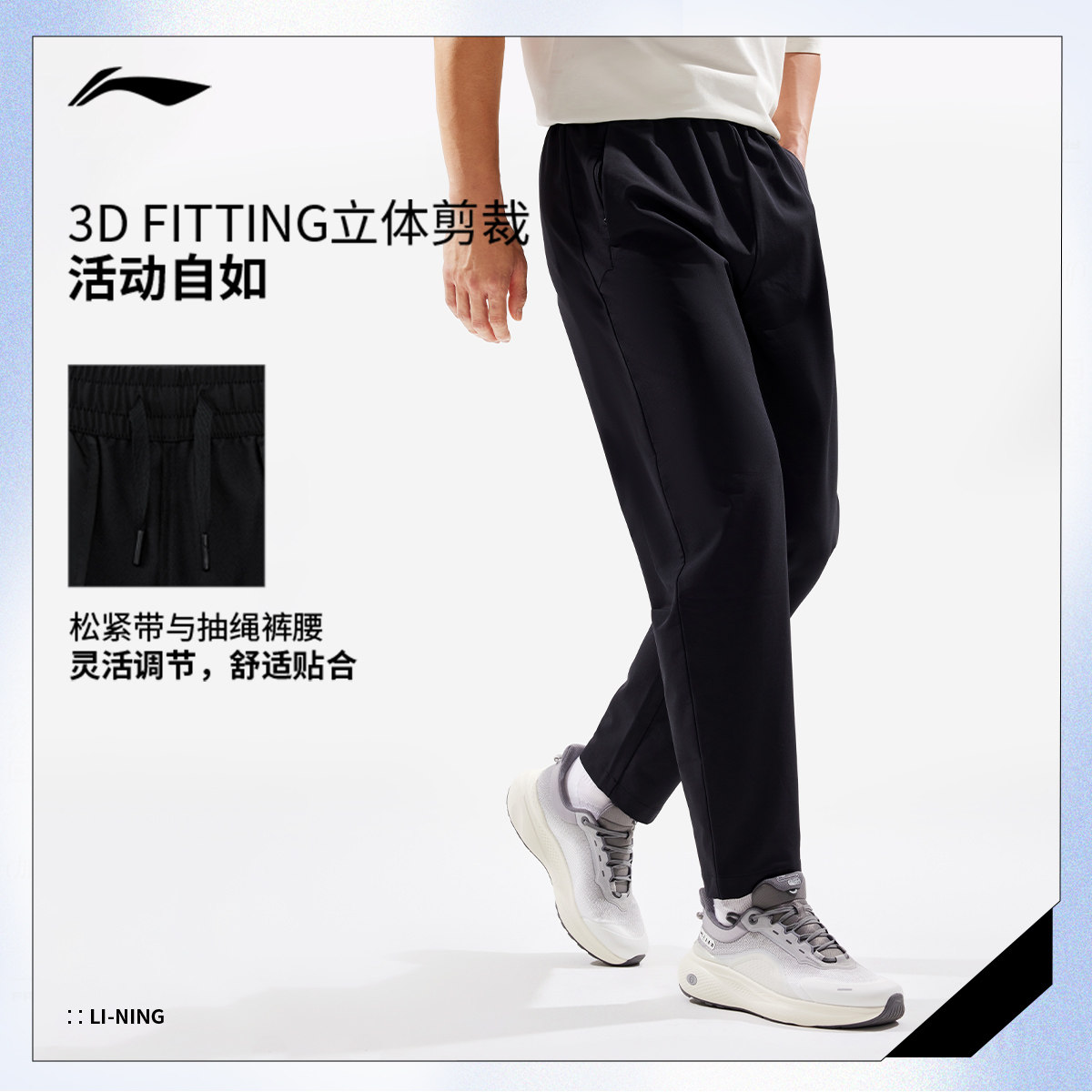 李宁运动裤2026新款男健身训练长裤防泼水跑步裤子春季黑色梭织裤