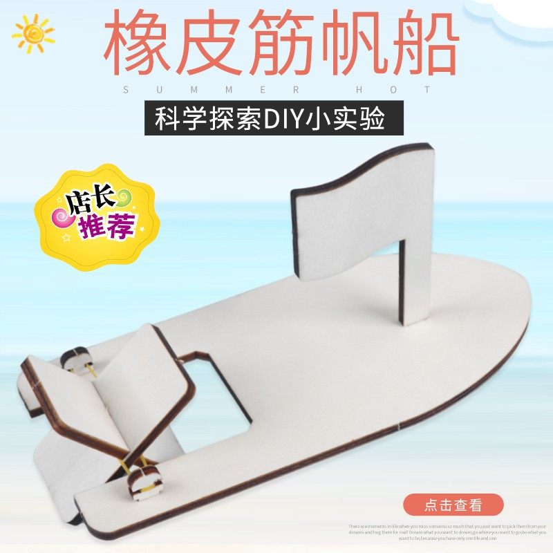 diy自制木帆船橡皮筋动力船 科技小制作创意儿童手工小发明材料包