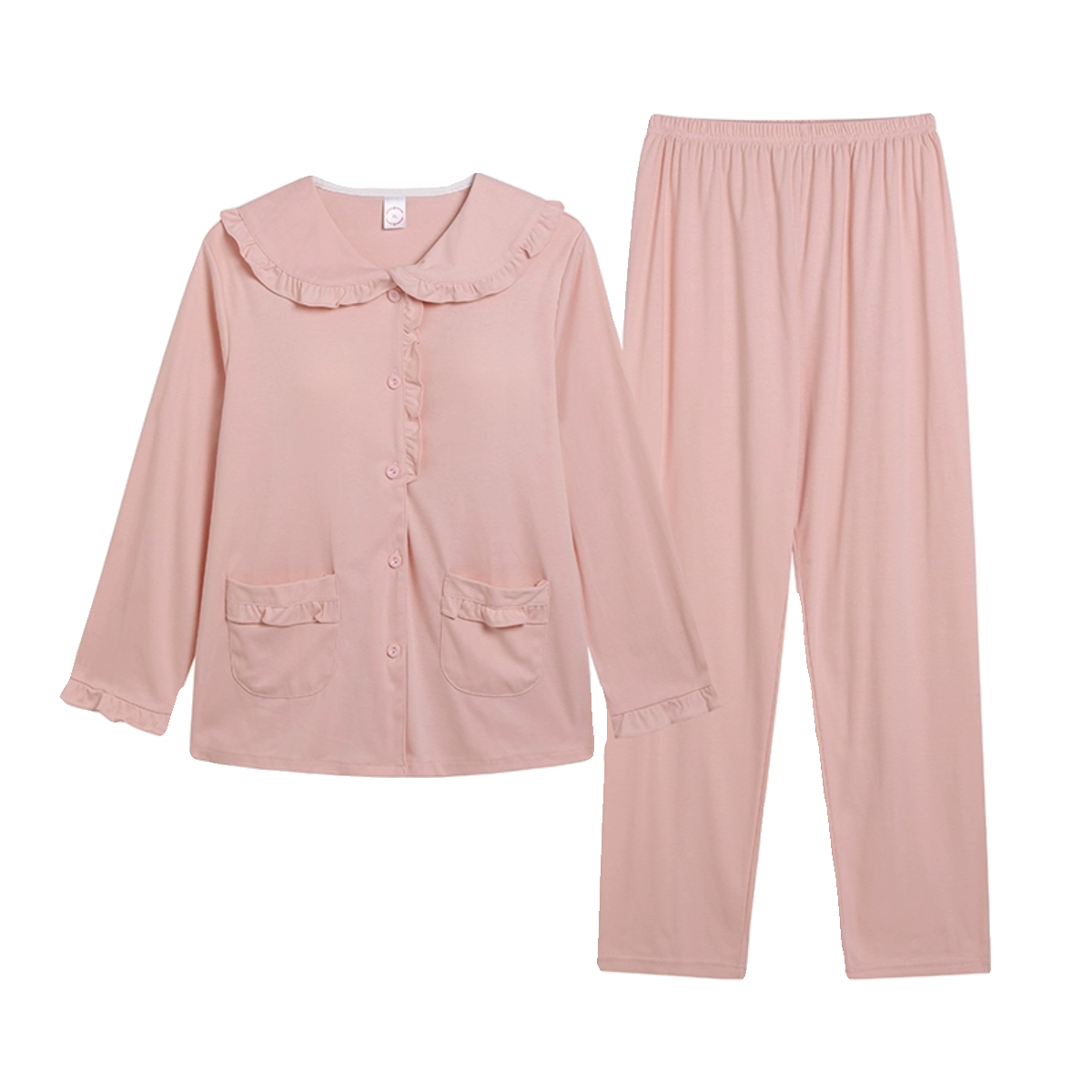 带胸垫纯棉睡衣女甜美可爱春秋季薄款长袖长裤开衫全棉家居服套装