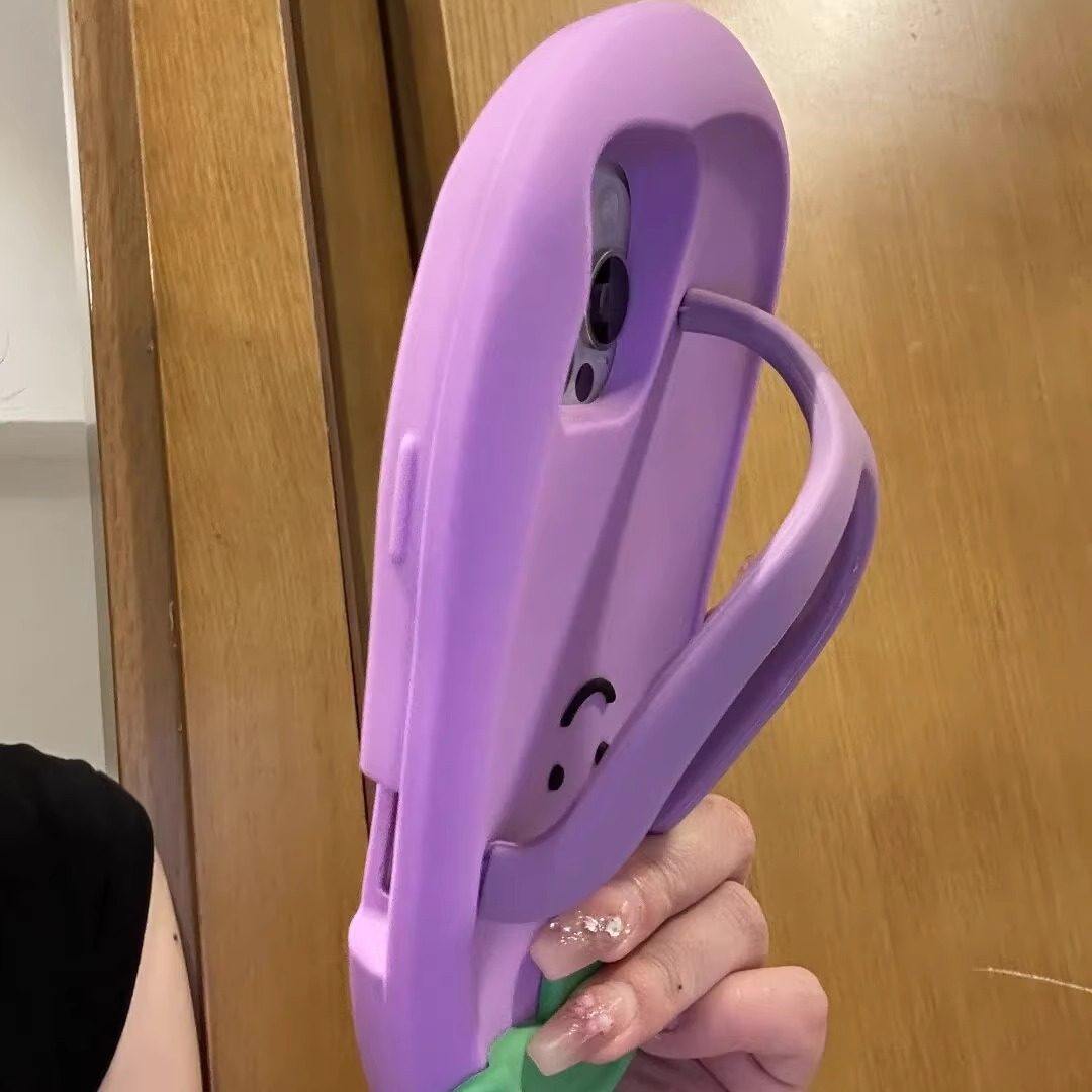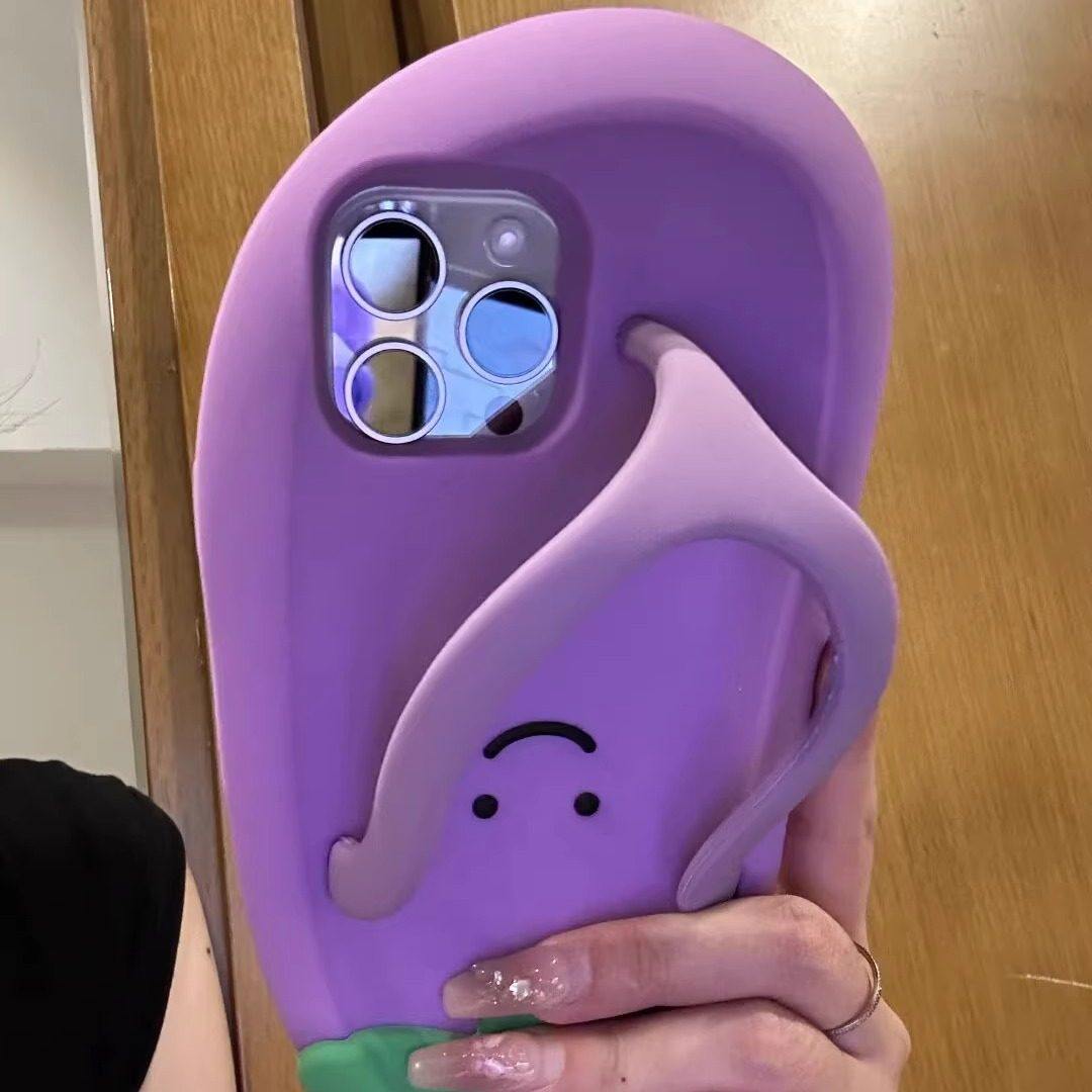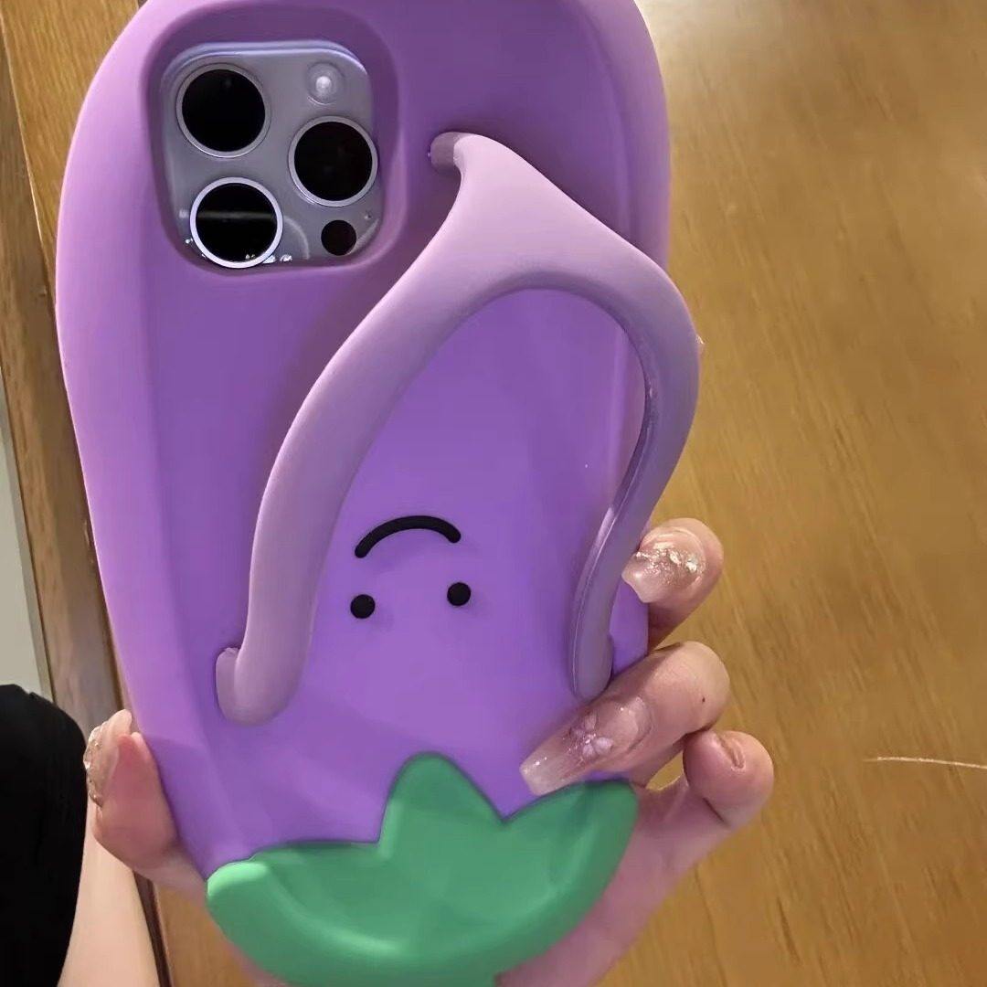 创意趣味微笑茄子人字拖手机壳适用苹果16promax新款硅胶15pro全包14/13防摔14promax保护套16