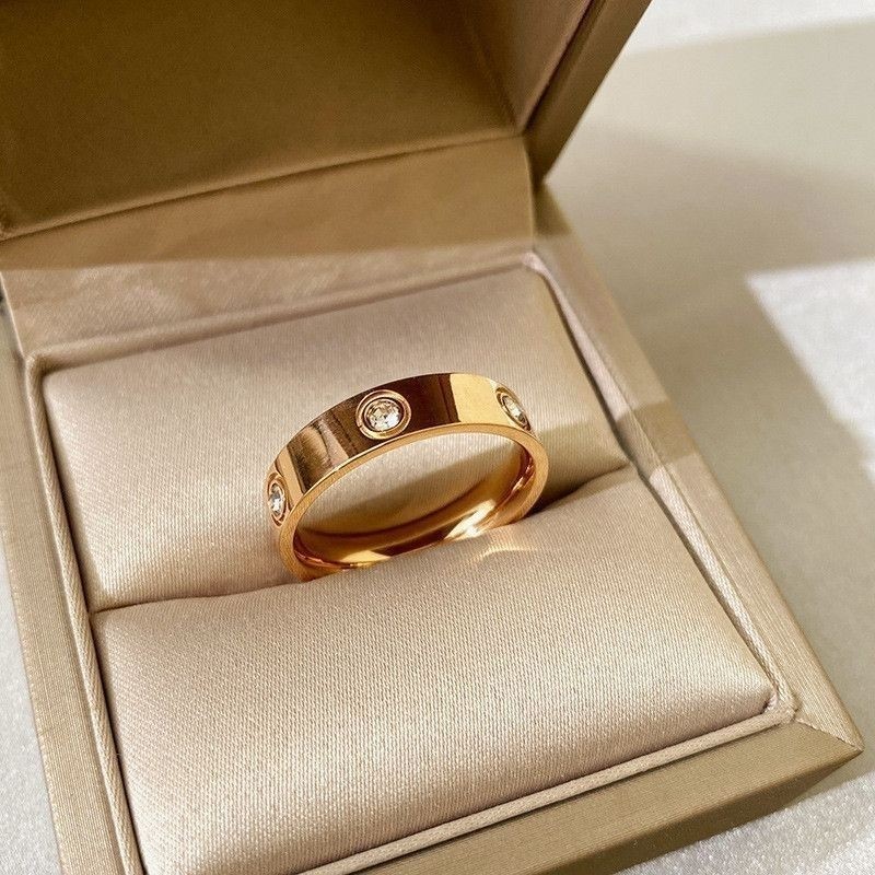 【洗手免摘】钛钢镶钻戒指女轻奢时尚食指戒玫瑰金情侣对戒指环男