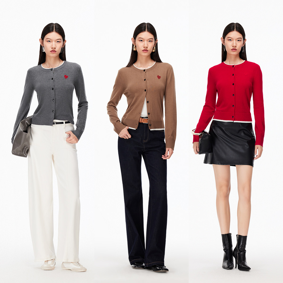 质感面料,亲肤柔软,穿着舒适; 圆领开衫