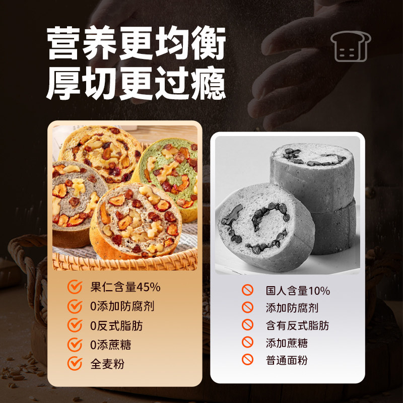 全麦面包果仁车轮整箱坚果大列巴无糖精早餐粗粮欧包代餐吐司健康