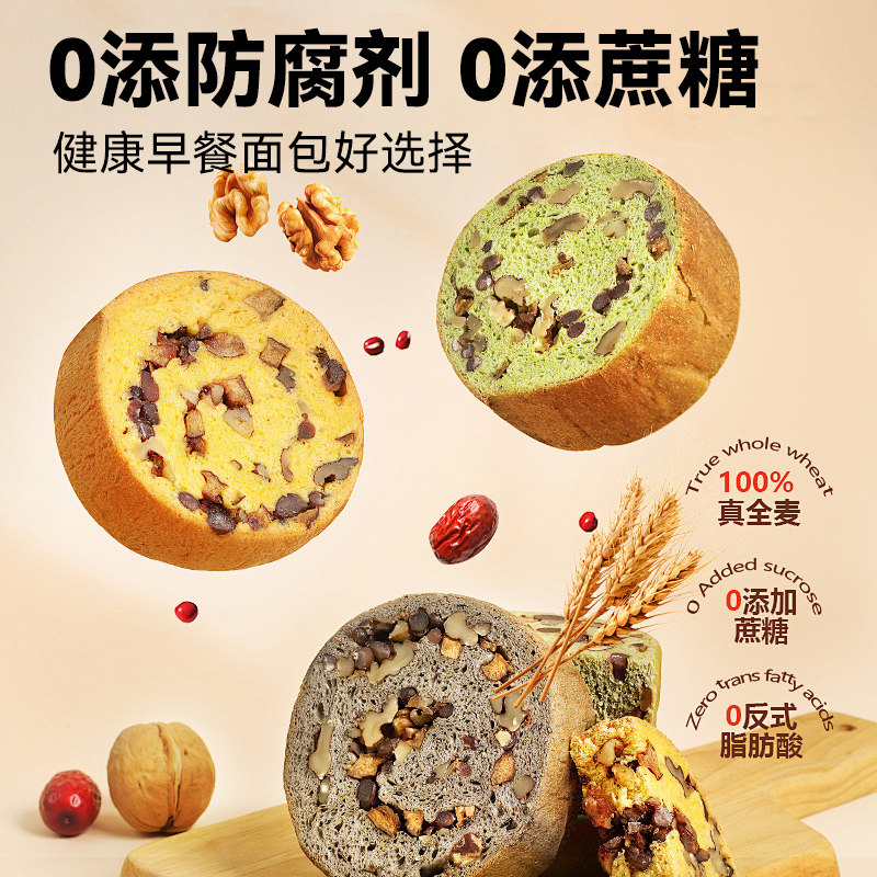 良品铺子坚果车轮面包全麦吐司早餐糕点零食孕妇粗粮代餐休闲食品