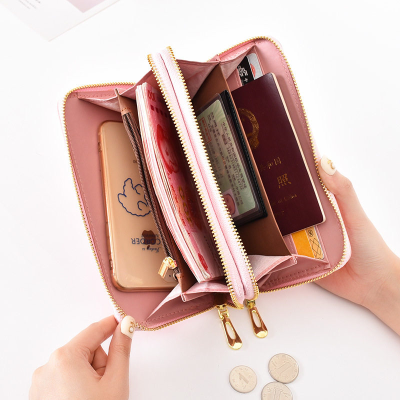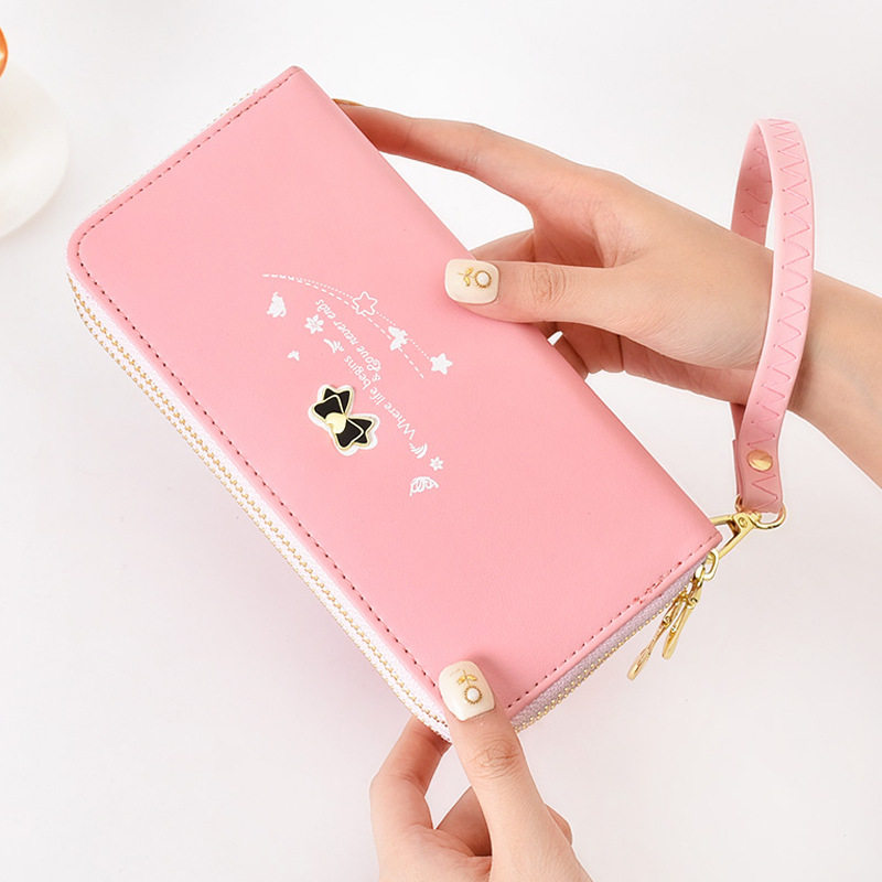 啄木鸟长款钱包女新款蝴蝶结双拉链手拿包大容量手机包女士钱夹