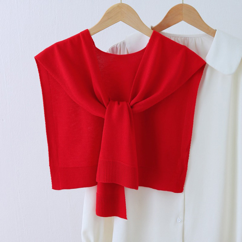 针织小披肩女大红色春秋冬季护颈外搭肩坎肩毛衣衬衫网红围巾条纹