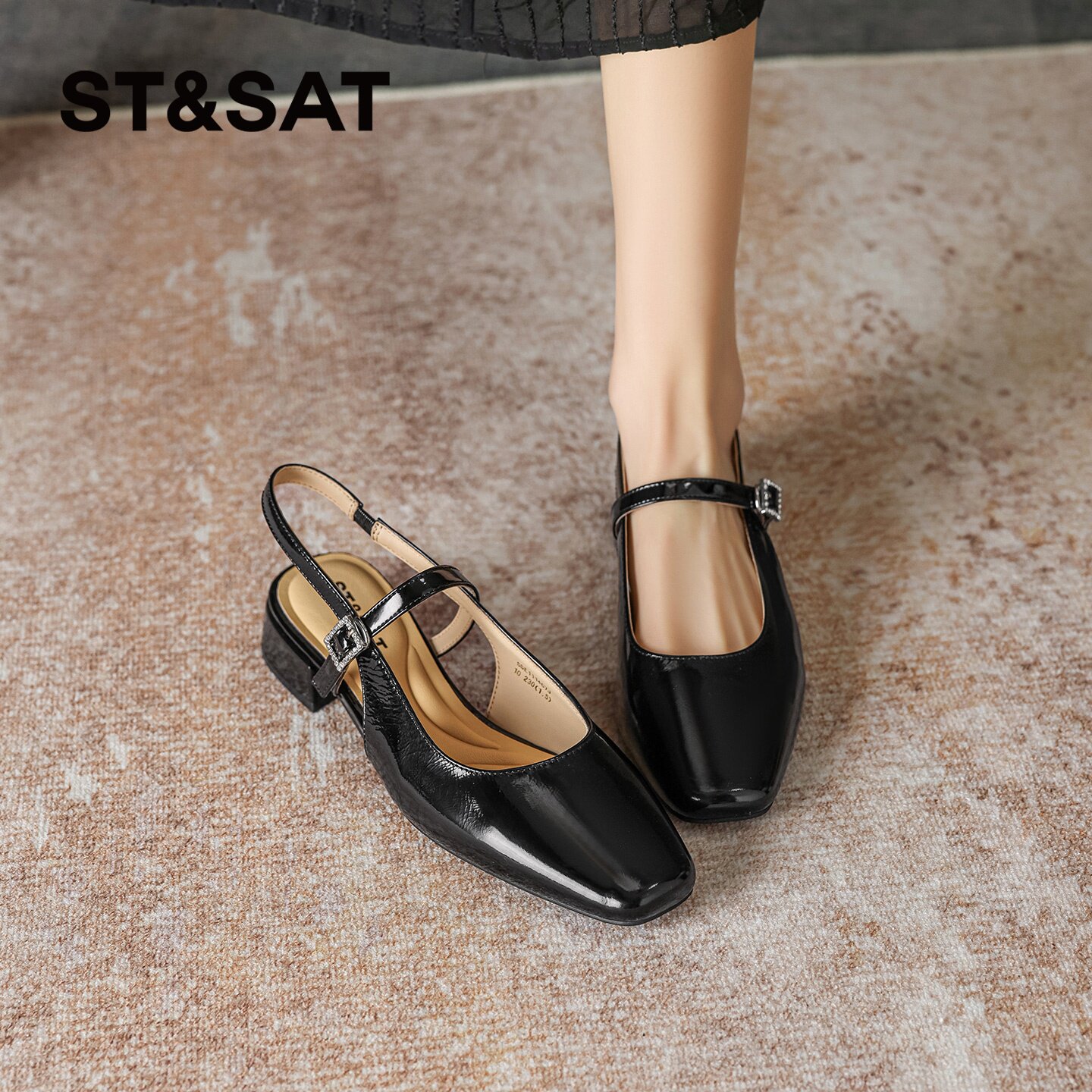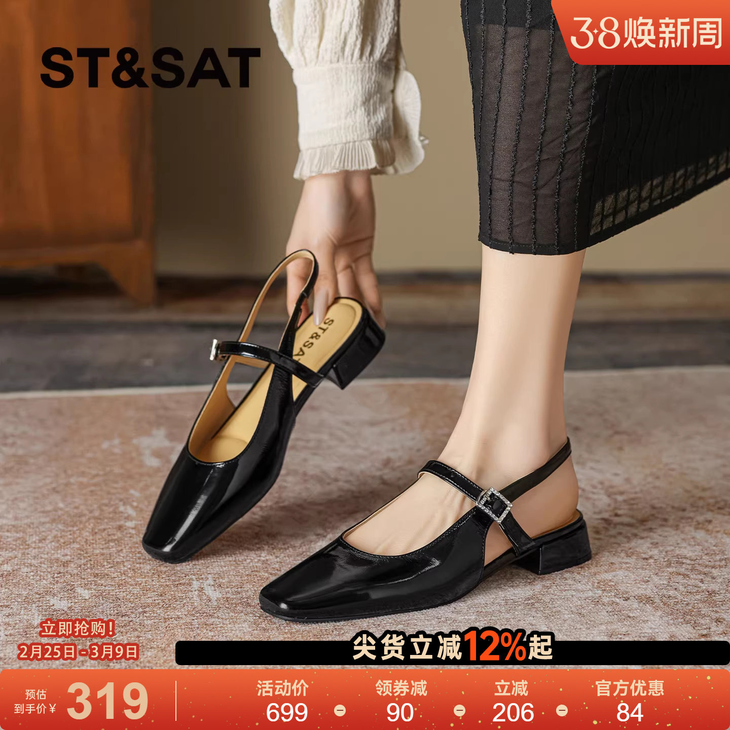 星期六黑色包头凉鞋2026春季新款简约气质女鞋轻盈法式时装凉鞋女