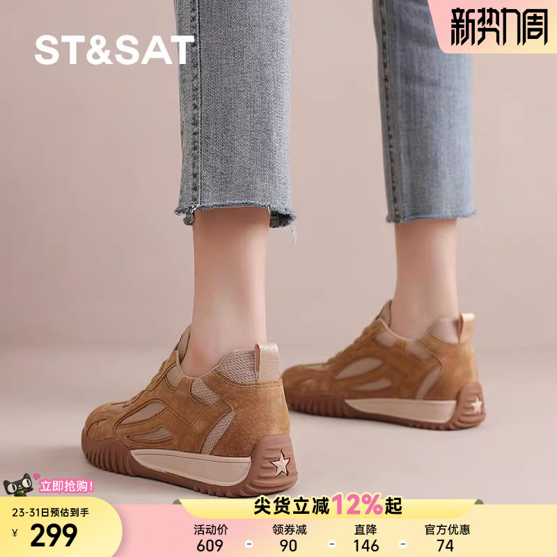 星期六真皮内增高德训鞋女士春季新款厚底阿甘老爹跑步休闲运动鞋