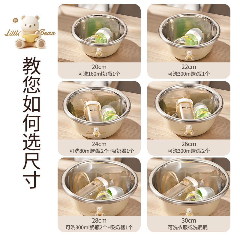 婴儿宝宝洗奶瓶专用盆沥水食品级304清洗加厚和面洗菜盆不锈钢盆