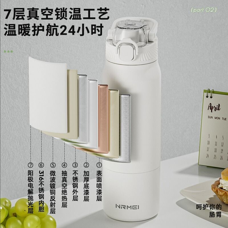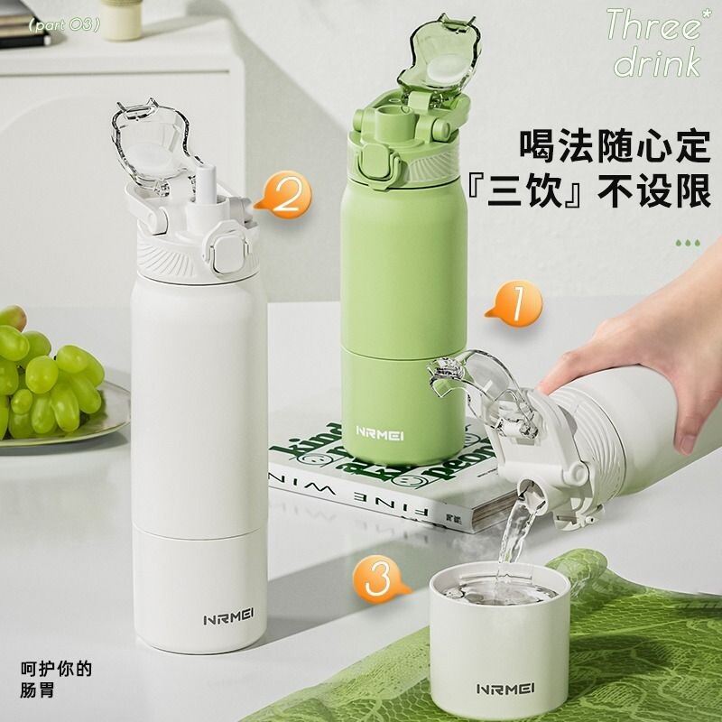 保温杯316不锈钢双饮咖啡杯大容量女高颜值随行吸管水杯情侣杯子