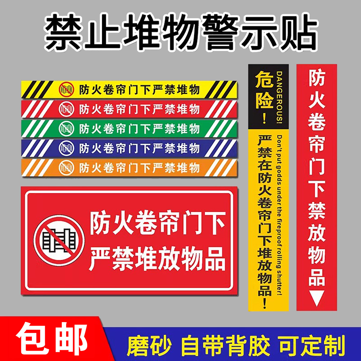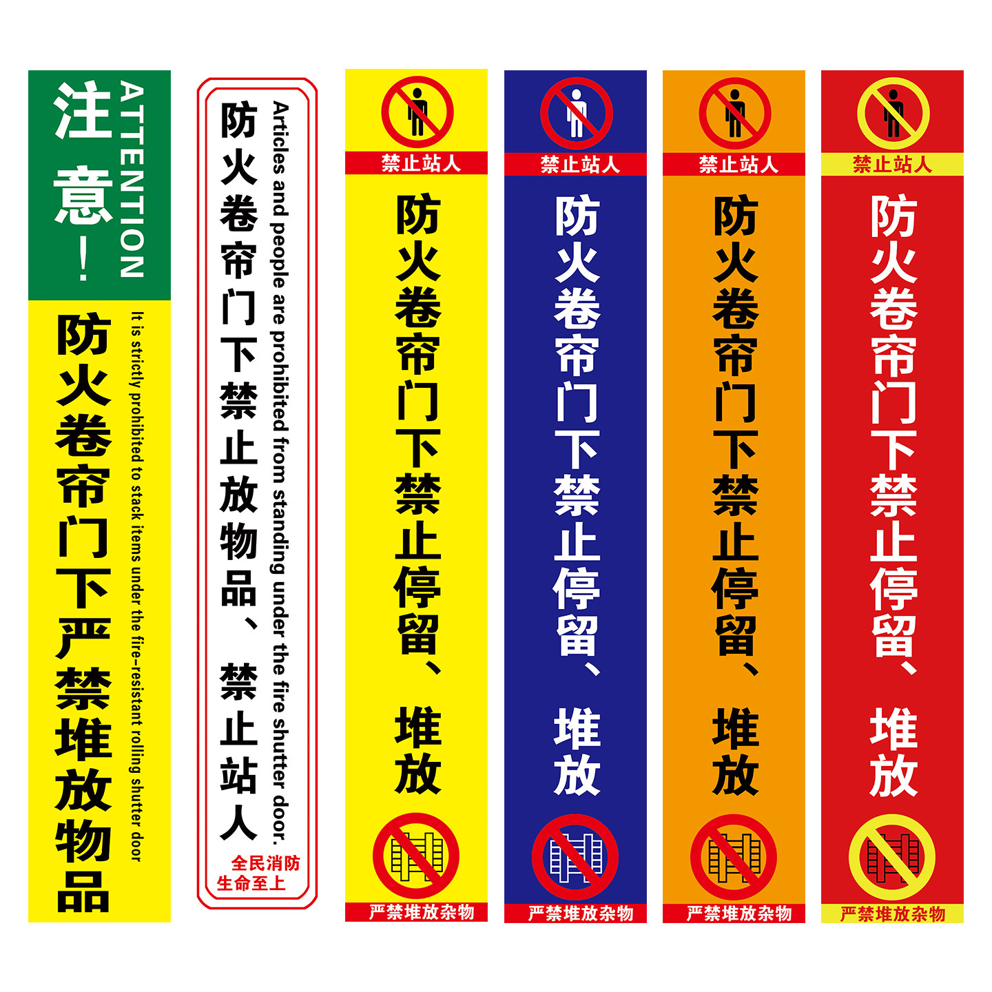 防火卷帘门下禁止站人禁止堆放物品标识贴 严禁堆放堵塞提示警示牌请勿停留堆放杂物墙贴 消防标识牌贴纸定制