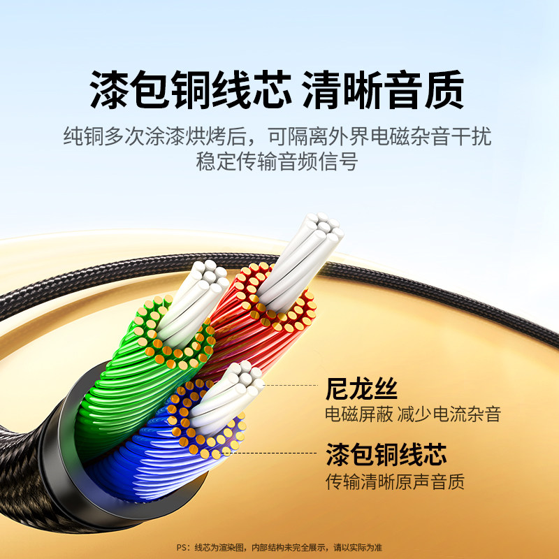 绿联aux音频线一分二耳机分线器3.5mm一公转二母转接头戴台式电脑手机1分2双人分享音响音箱一拖二延长线