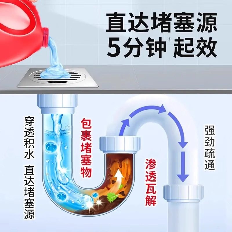 管道疏通剂强力溶解下水道马桶厕所地漏除臭厨房油污堵塞分解神器