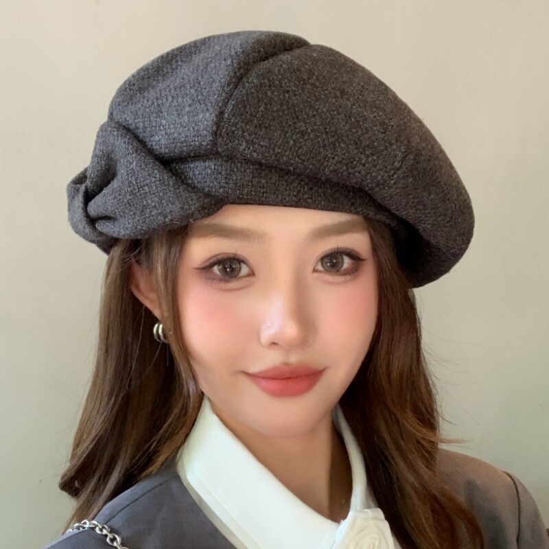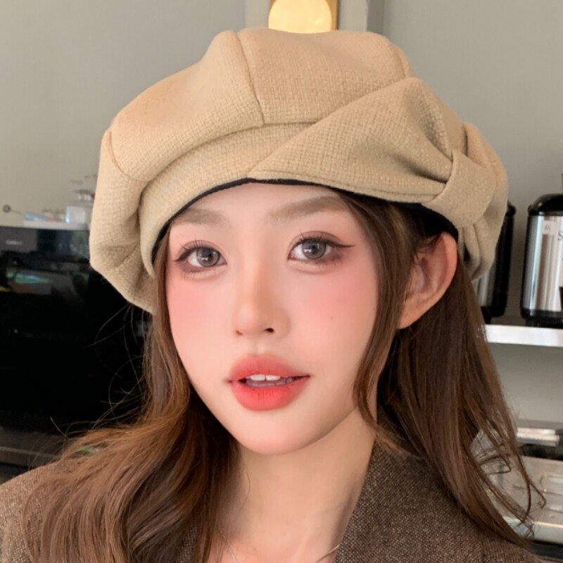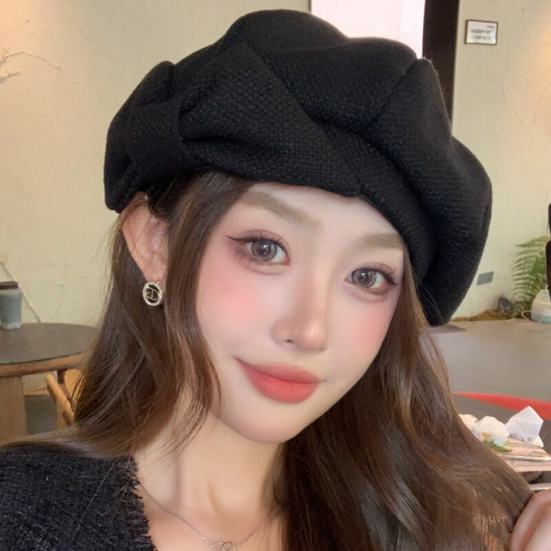 韩版贝雷帽子秋冬新款女百搭八角帽人气质显脸小画家帽可折叠黑色