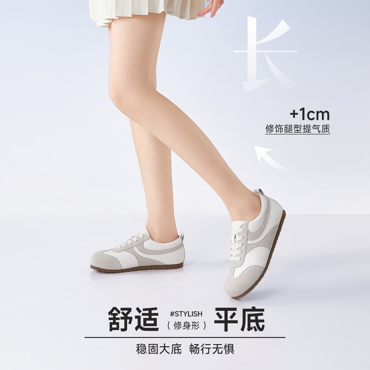 运动鞋厚底休闲板鞋女2025秋冬女款新款米色加绒女鞋内增高德训鞋