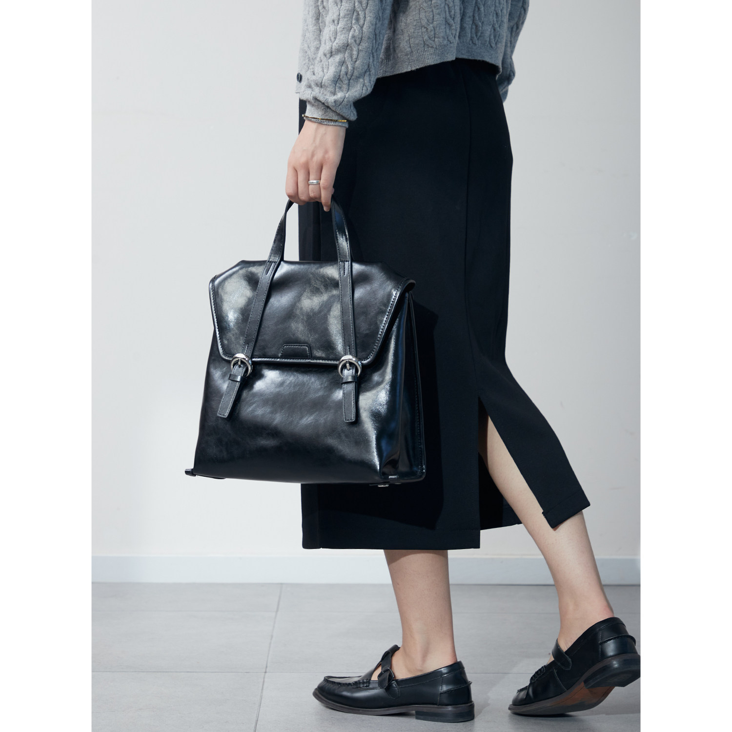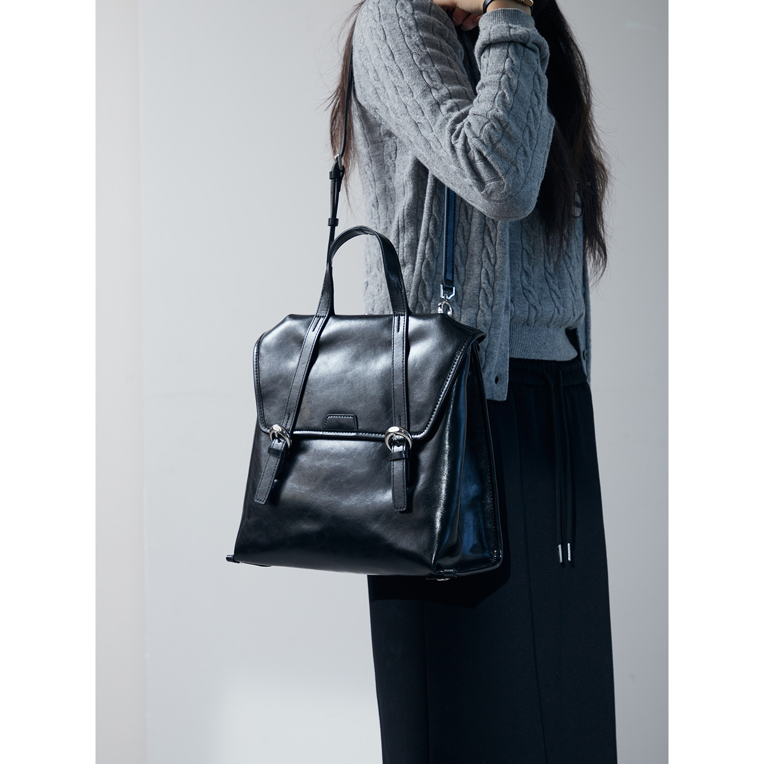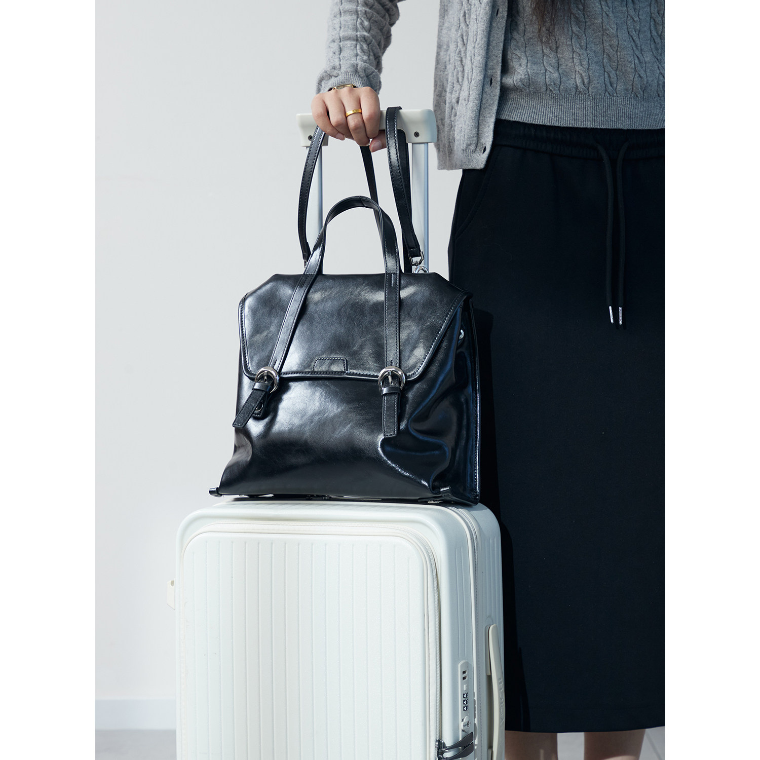 伊米妮新款油蜡牛皮手提单肩大容量双肩包高级感女包背包通勤休闲