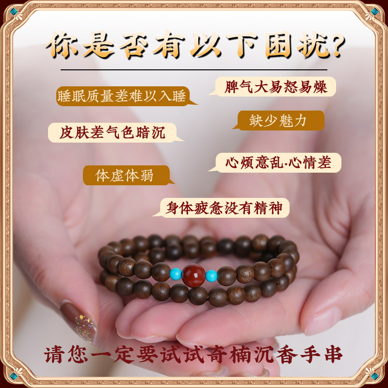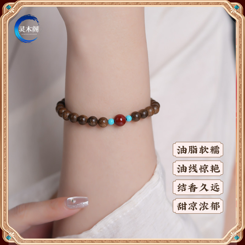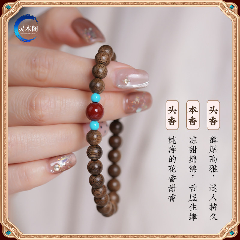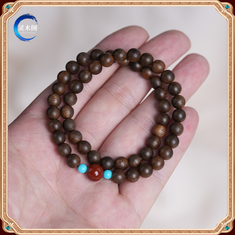 天然文莱沉香手串女士木质佛珠手链沉水级双圈叠戴生日礼物安神