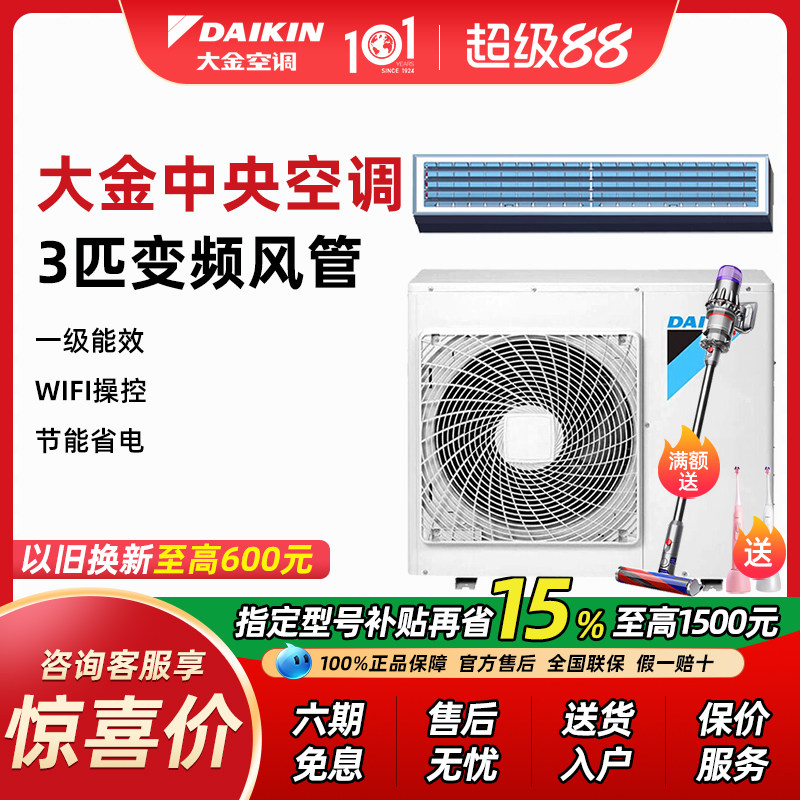 【15%补贴】大金空调 一拖一3匹风管机 中央空调家用客厅冷暖变频