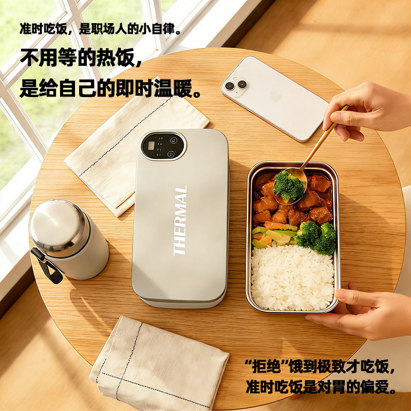 免注水带饭上班族便携保温饭盒电加热可插电热304不锈钢充电热饭
