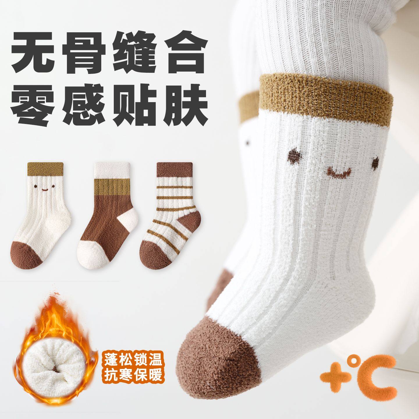 儿童袜子加厚保暖秋冬纯色婴儿宝宝中筒可爱秋冬季新生儿男童混色