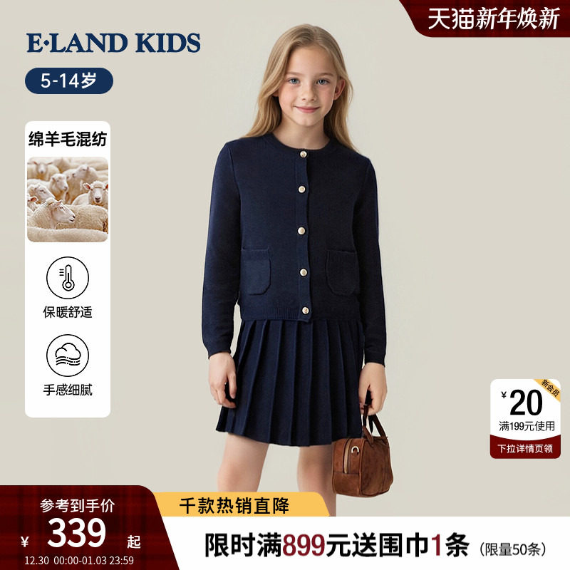 【绵羊毛混纺】eland kids衣恋童装女童针织开衫套装25年秋冬新品