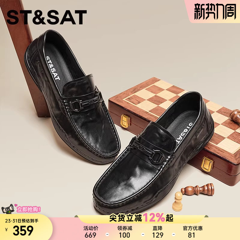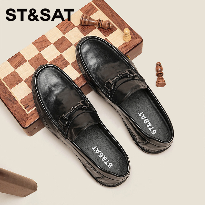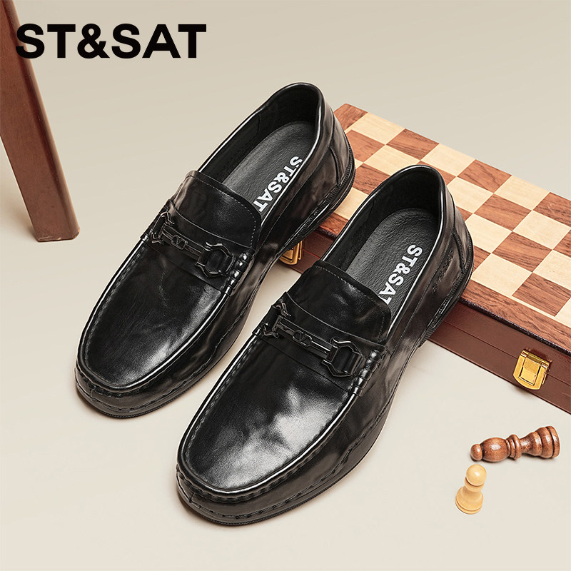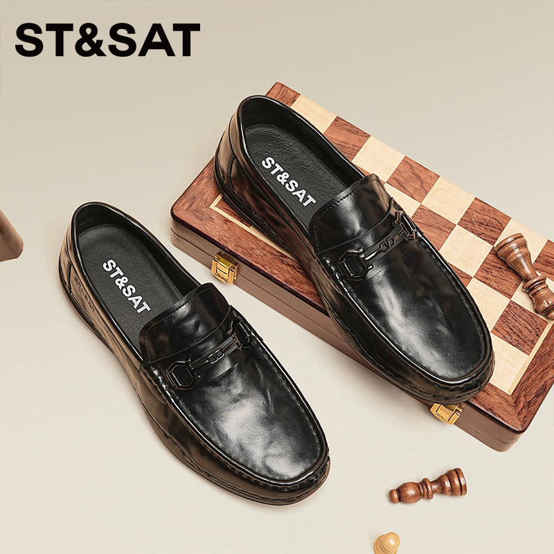 星期六2026商务休闲百搭时尚乐福鞋男鞋新款一脚蹬软底豆豆鞋黑色