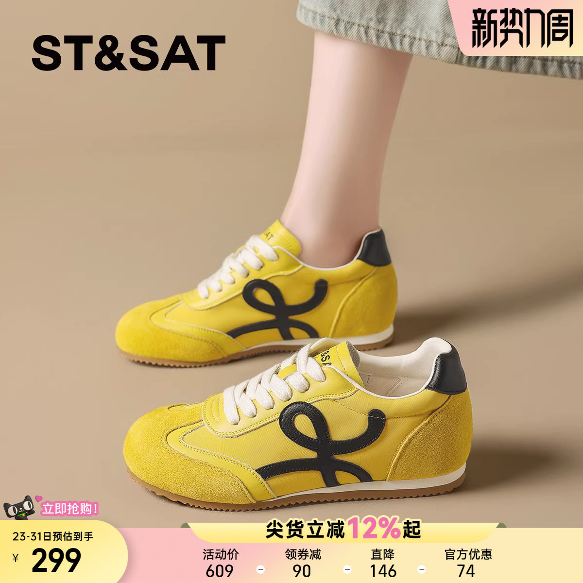 厚底德训鞋女款2026新款春季女鞋百搭黄色鞋子内增高运动鞋女板鞋