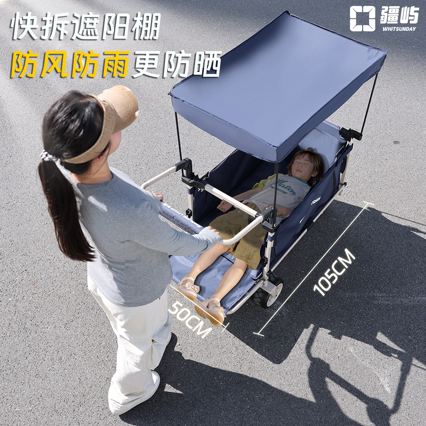 疆屿户外露营车便携可折叠推车儿童可躺拖车野餐旅行车收纳手推车