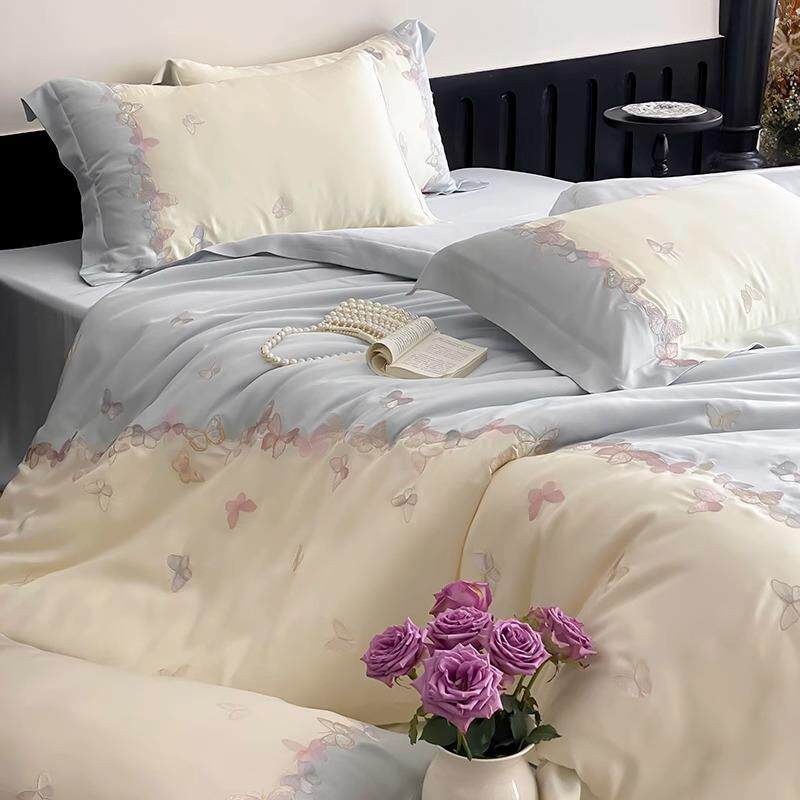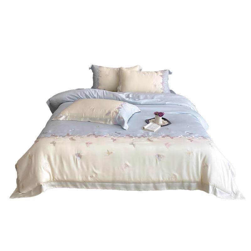 小清新夏季凉感LF兰精天丝四件套浪漫少女心蝴蝶刺绣拼接被套床品