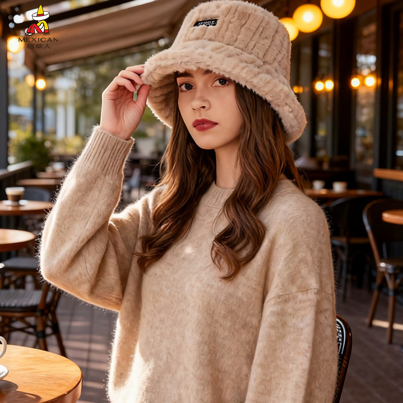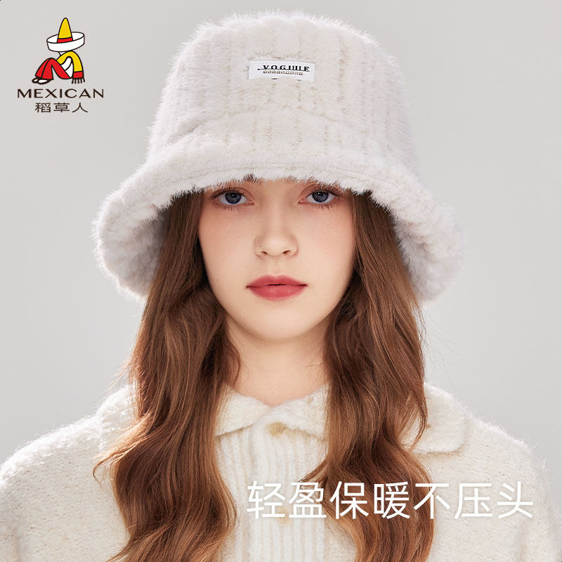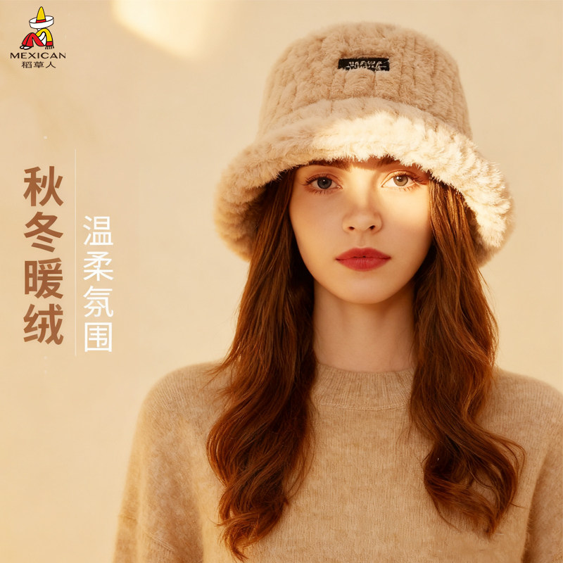 稻草人秋天时髦气质新款渔夫帽女冬季加绒保暖大头围显脸小盆帽子