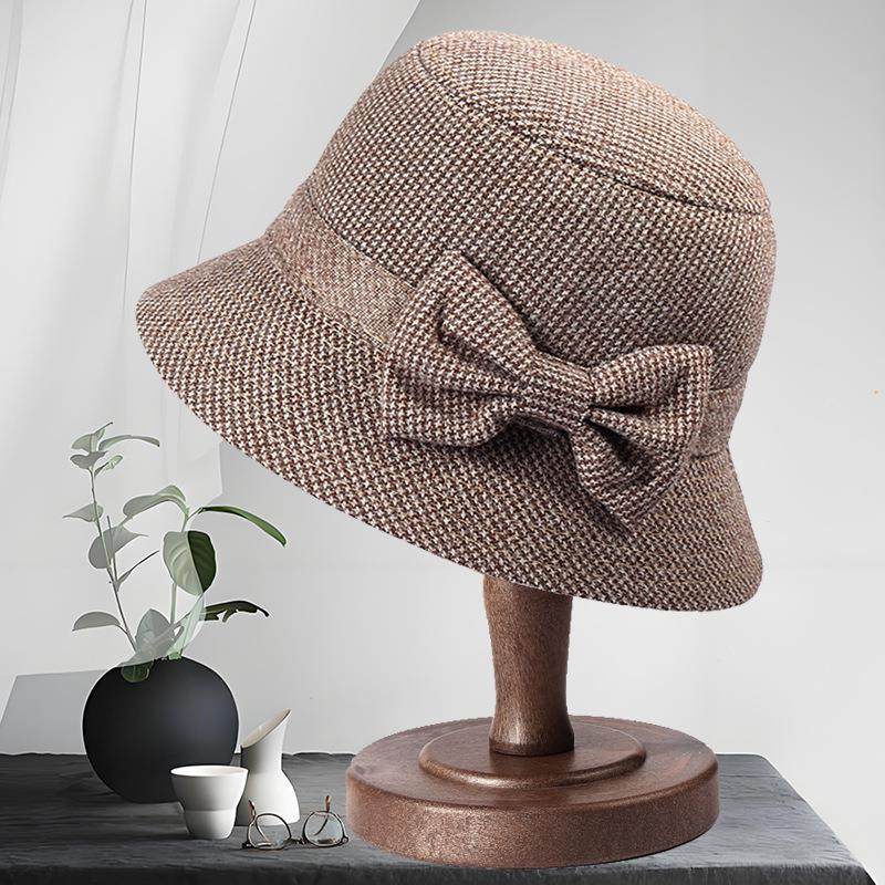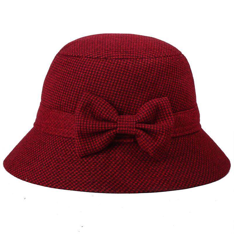 中老年新款秋冬帽女妈妈洋气毛呢礼帽渔夫帽奶奶加厚保暖防寒盆帽
