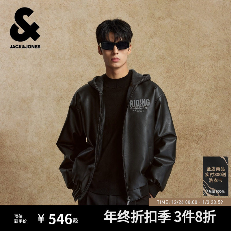 杰克琼斯棉服男款秋冬新款加厚棉衣宽松美式重磅PU皮夹克外套男装