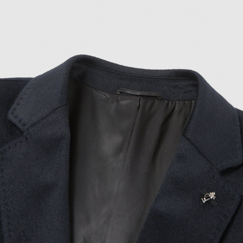 【直播专属】海上公路鲨鱼纹戗驳领毛呢大衣男士高级感长款外套
