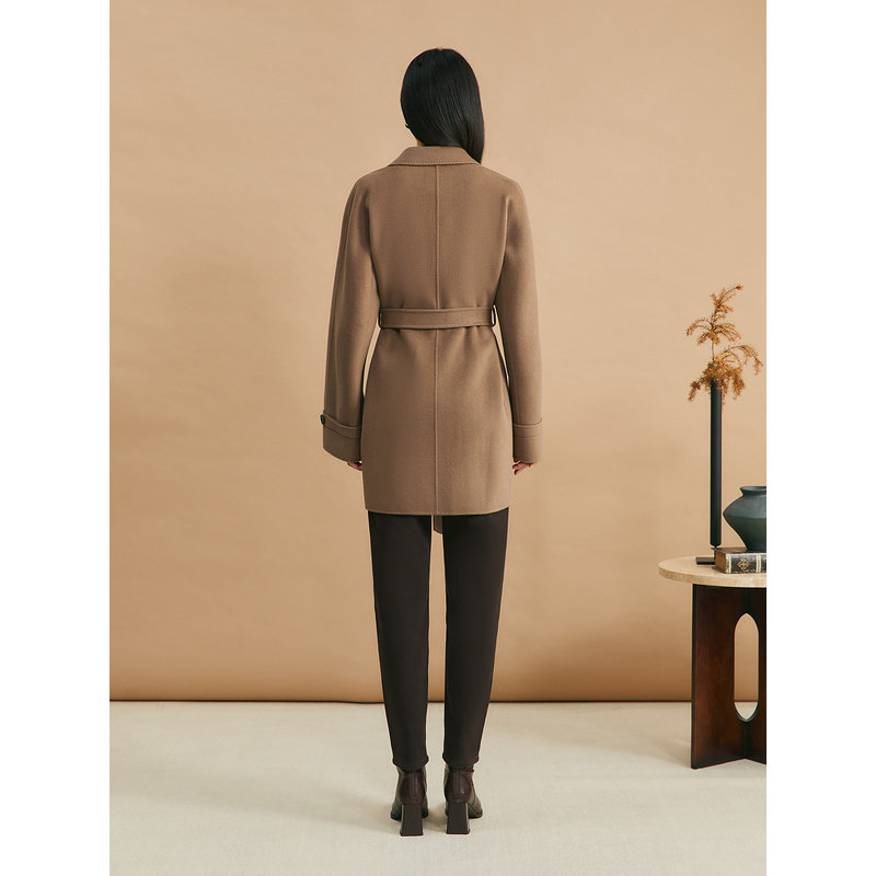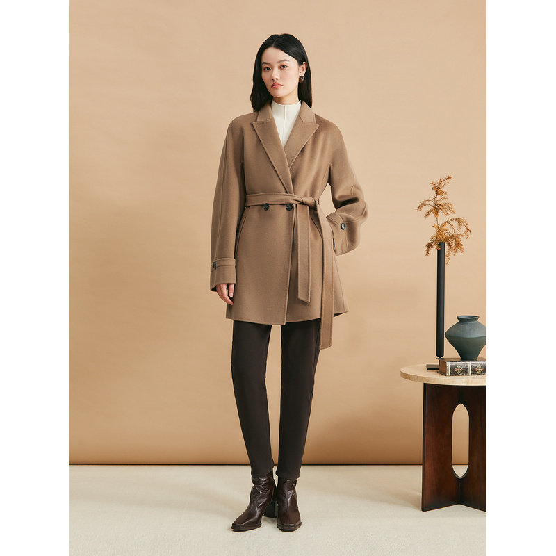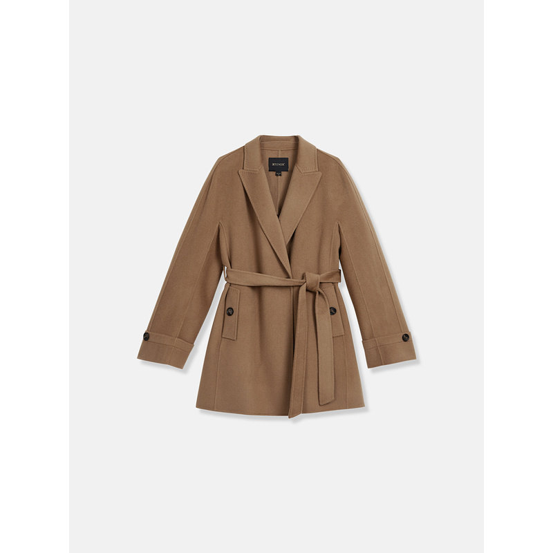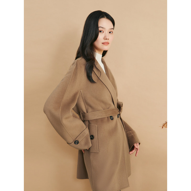 YINER音儿女装冬季戗驳领美丽诺羊毛羊绒混纺双面呢大衣外套
