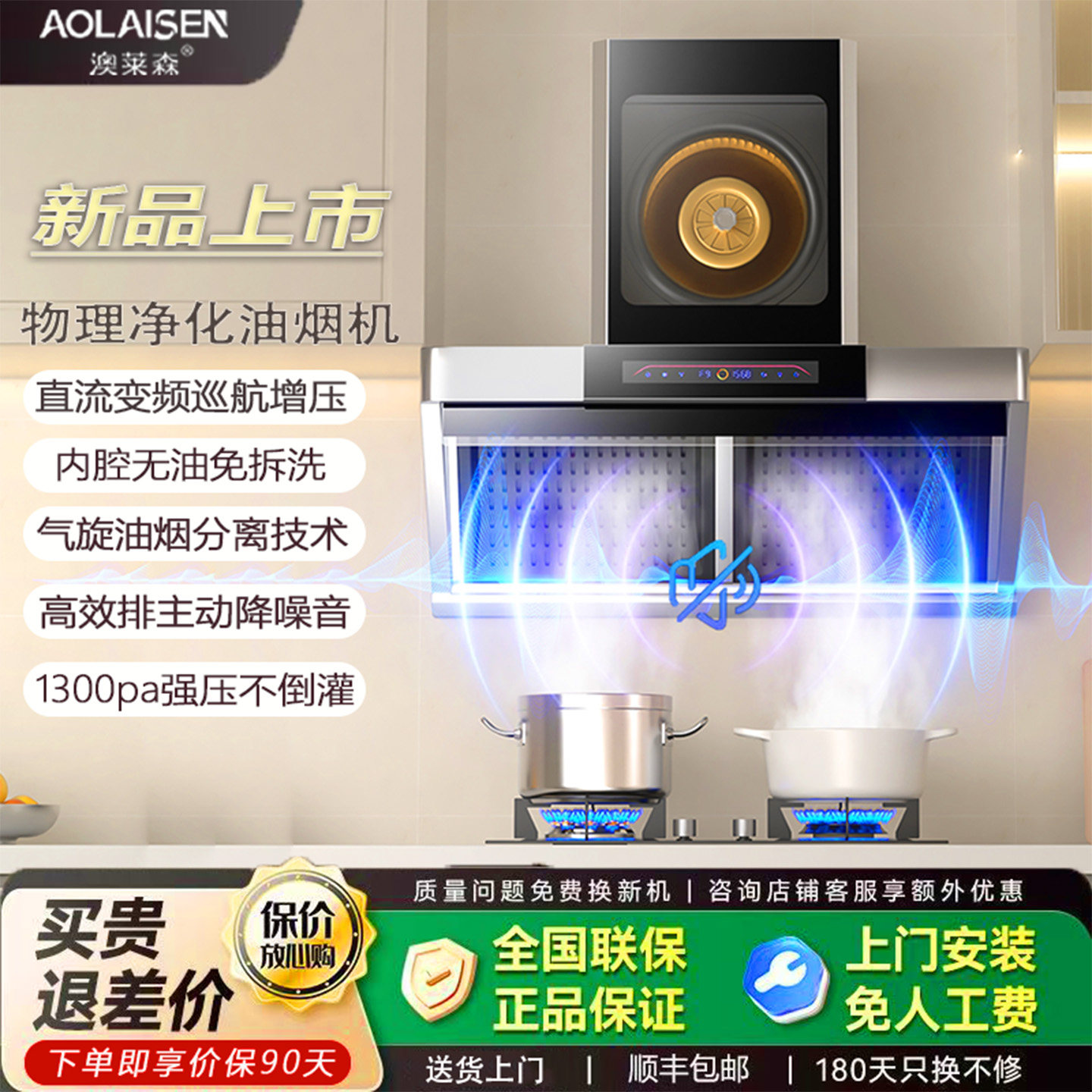 澳莱森不锈钢油烟机油烟分离直流变频吸油烟机静音大吸力免拆洗