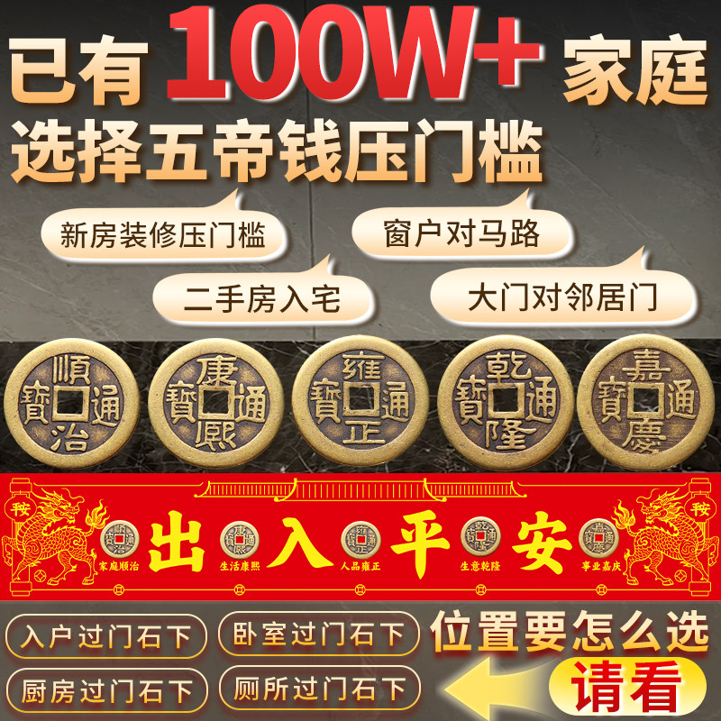 五帝钱压门槛石出入平安过门石下压的装修专用清代铜钱入户门真品