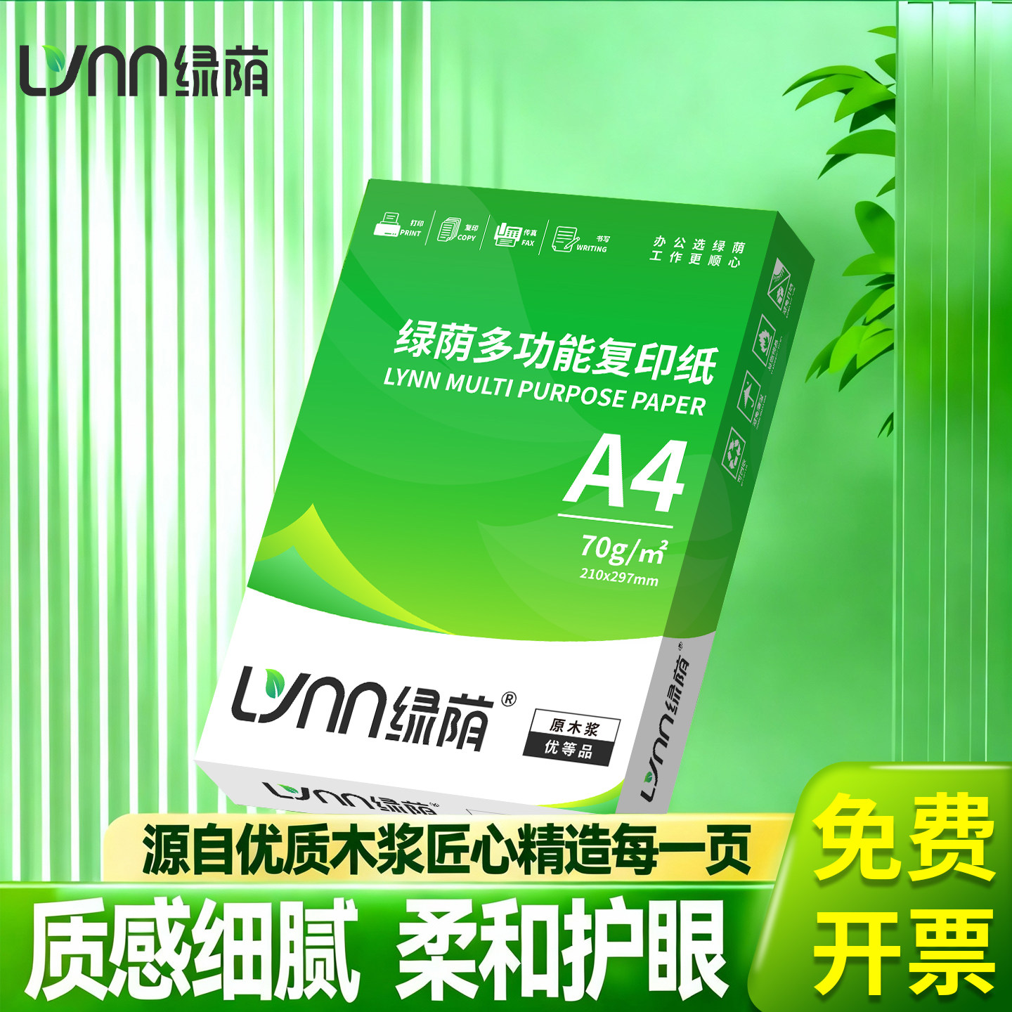 绿荫A4打印纸复印a4纸500张一包打印纸70g单包办公用纸双面打印不卡纸加厚80g一箱草稿纸学生用整箱批发包邮
