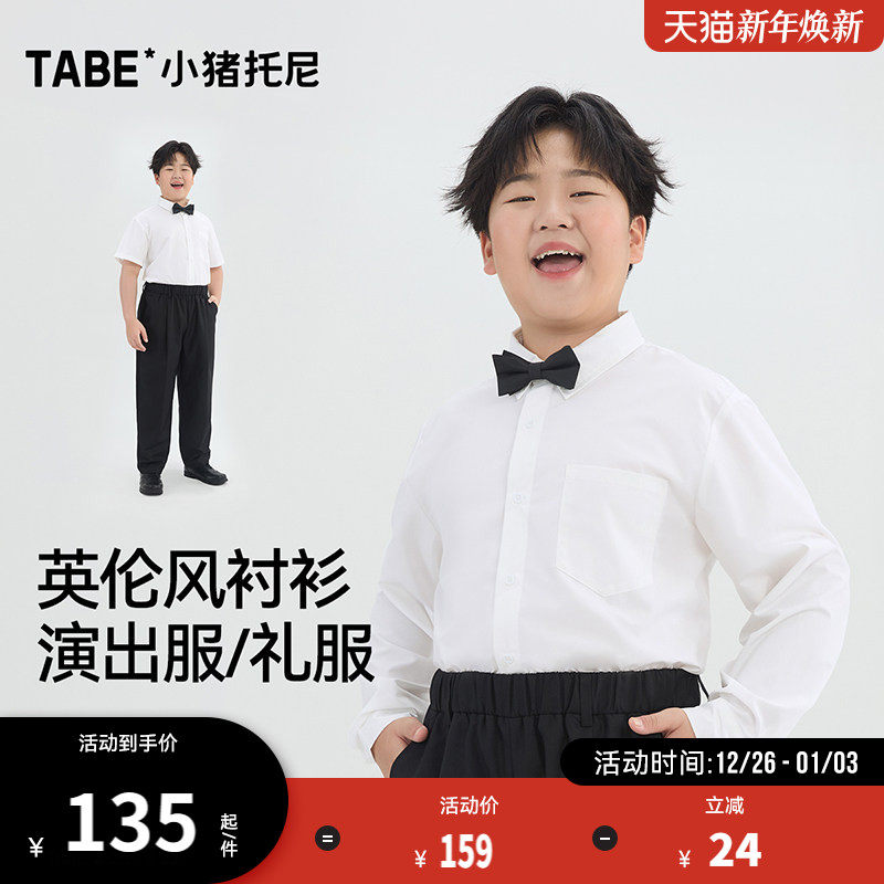 【儿童西装男童礼服】小猪托尼男童白色衬衣衬衫儿童正装长袖上衣