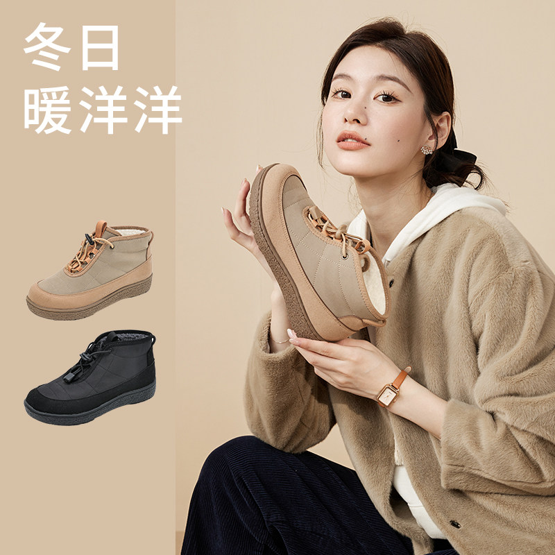骆驼雪地靴女鞋2025冬季新款加绒保暖棉鞋女加厚东北厚底增高短靴