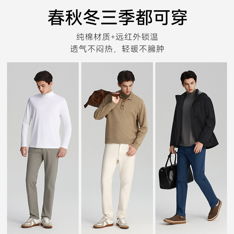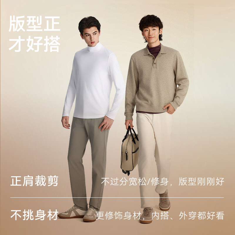 十如仕男智性风高领半高领100%新疆长绒棉情侣百搭长袖打底T恤