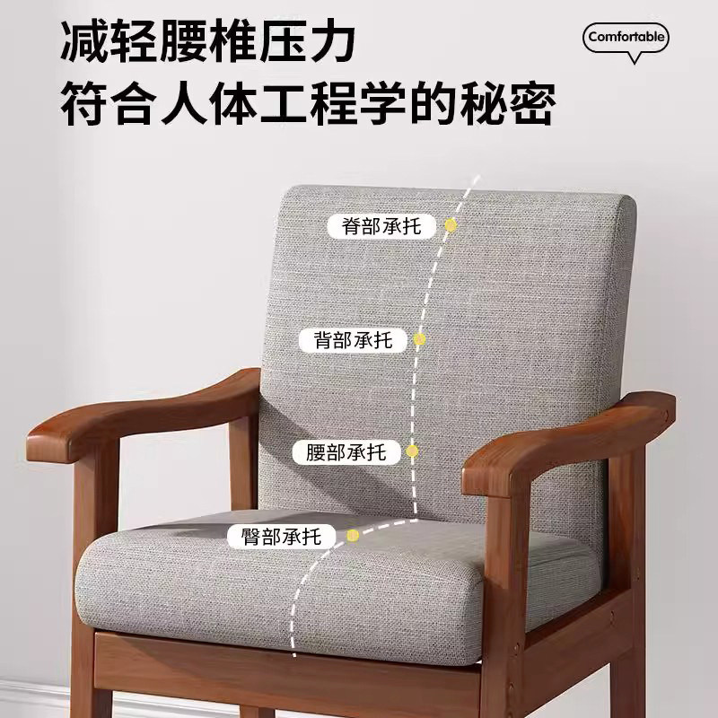 实木椅子扶手靠背椅餐桌椅舒适久坐麻将老人椅家用单人沙发椅餐椅