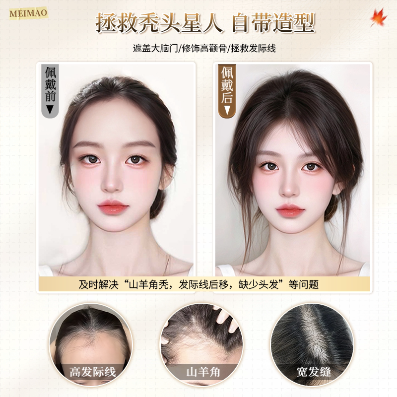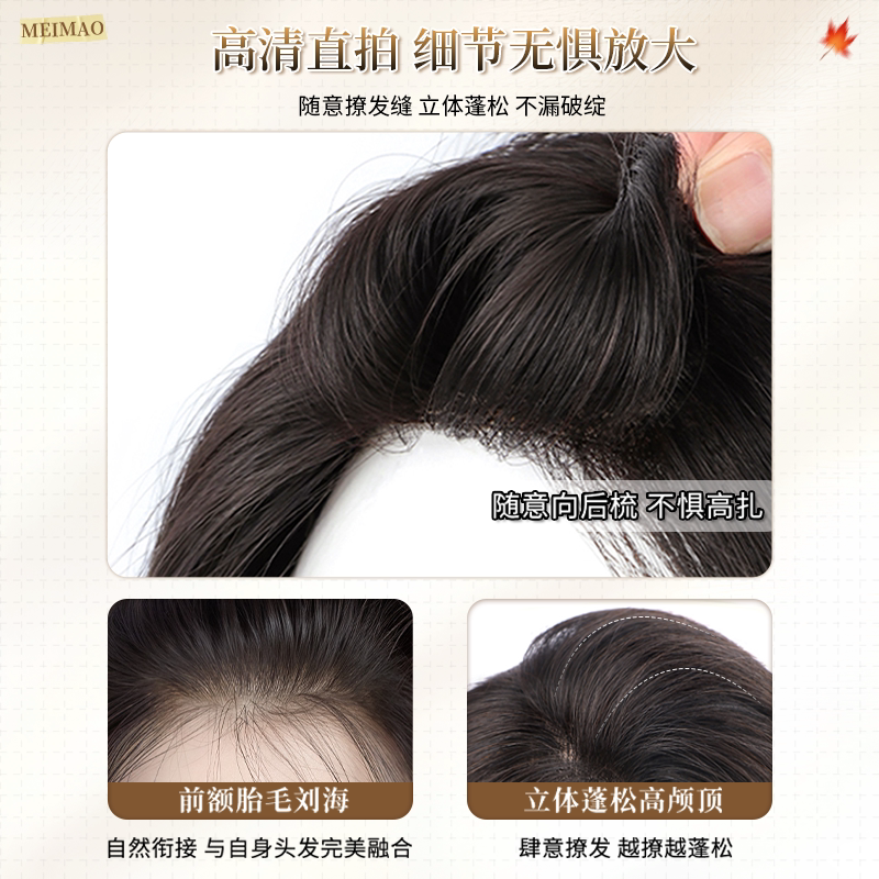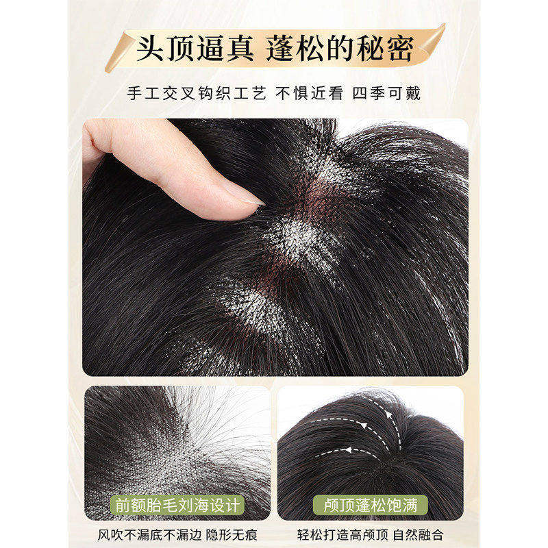 八字刘海假发女片头顶含真发无痕补发遮白发蓬松增发量高颅顶假发