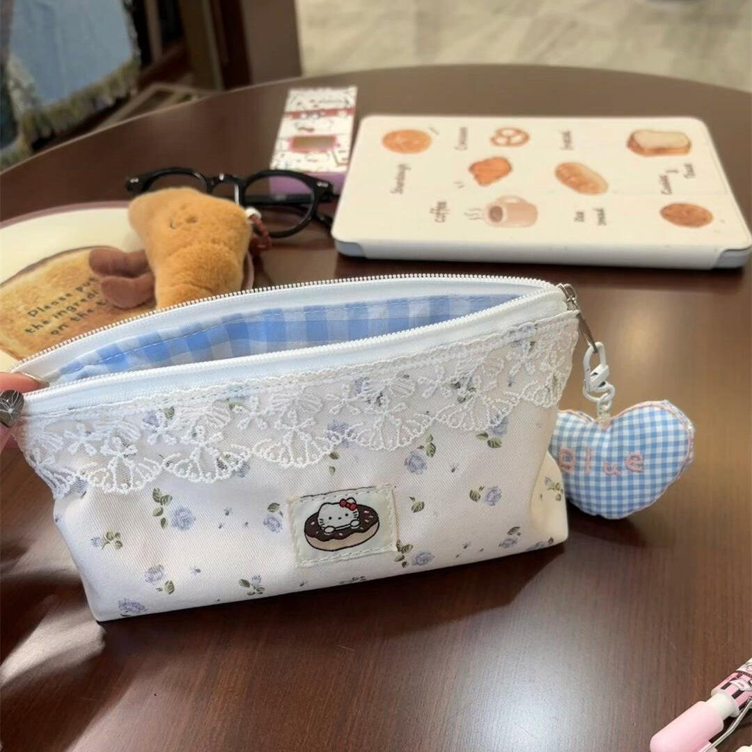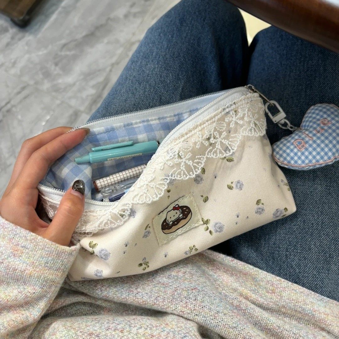 可爱小猫碎花铅笔袋新款小猫笔袋简约高颜值ins少女心文具盒女学生大容量文具收纳袋