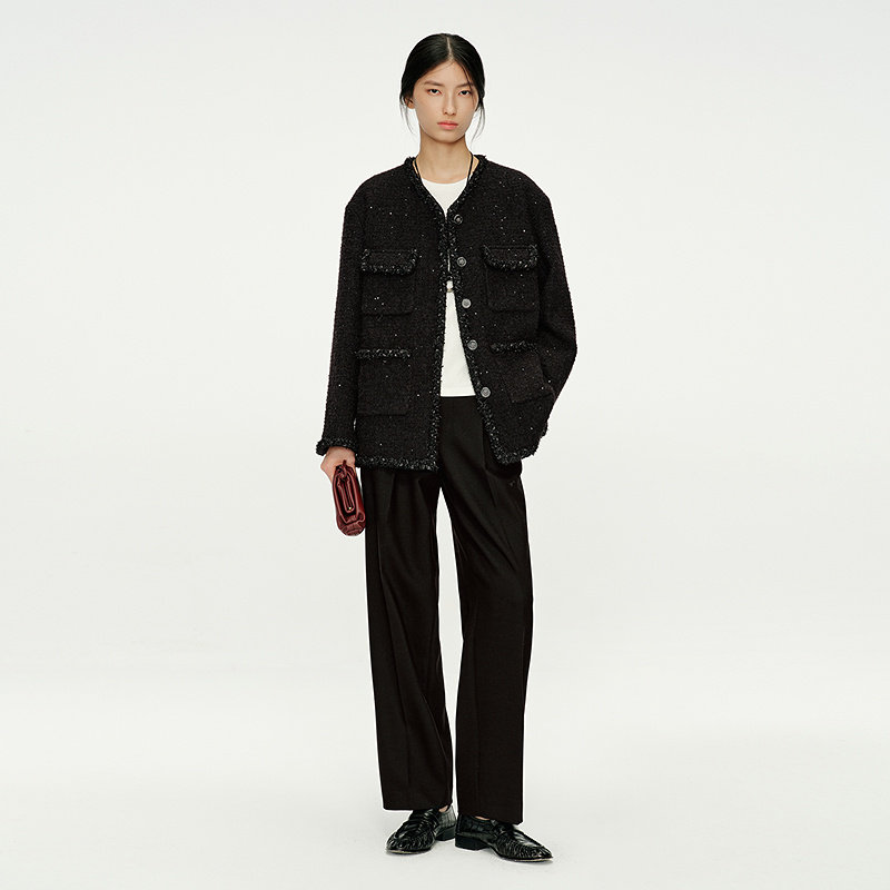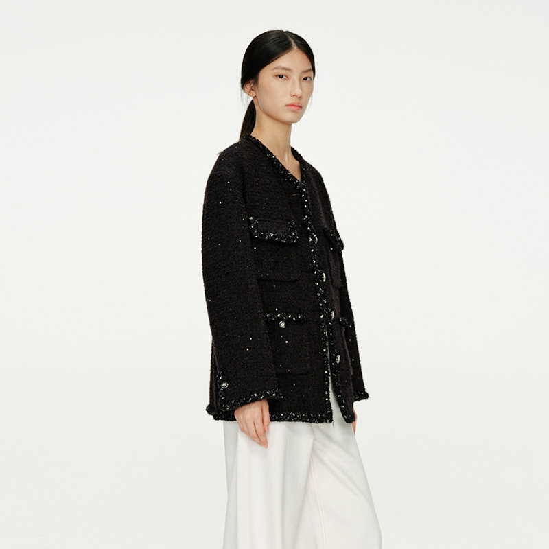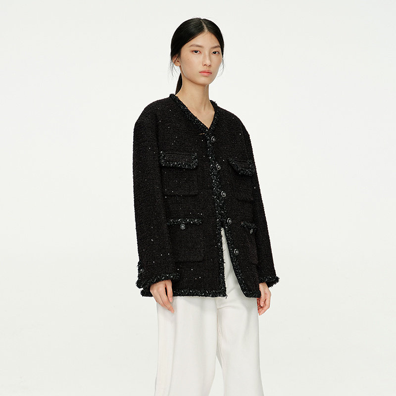 MESUX米岫25冬迪木尔风羊驼毛混纺小香风V领毛呢外套上衣MNWUH606