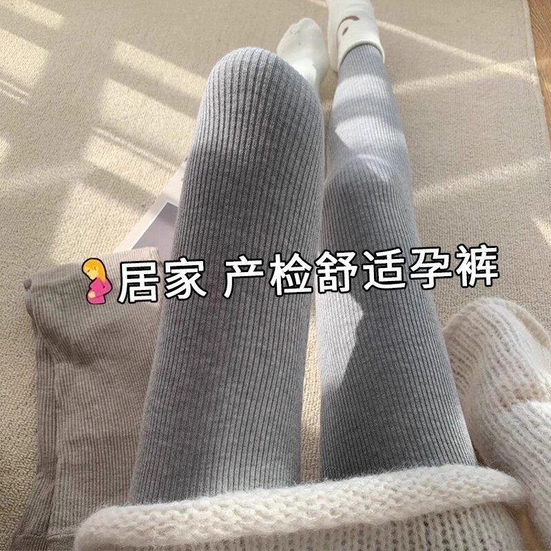 孕妇打底裤秋冬季外穿加绒裤子高腰托腹不勒肚子加厚保暖棉裤孕期