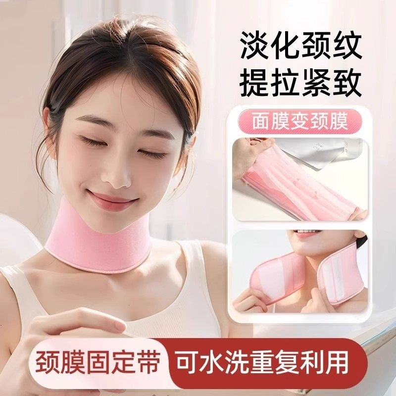 颈膜固定带麂皮绒颈部纹可水洗敷脖子面膜保湿绑带辅助器护颈脖套