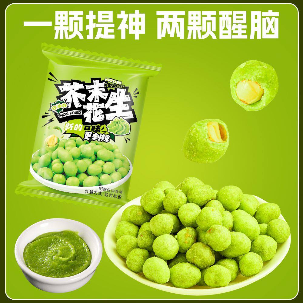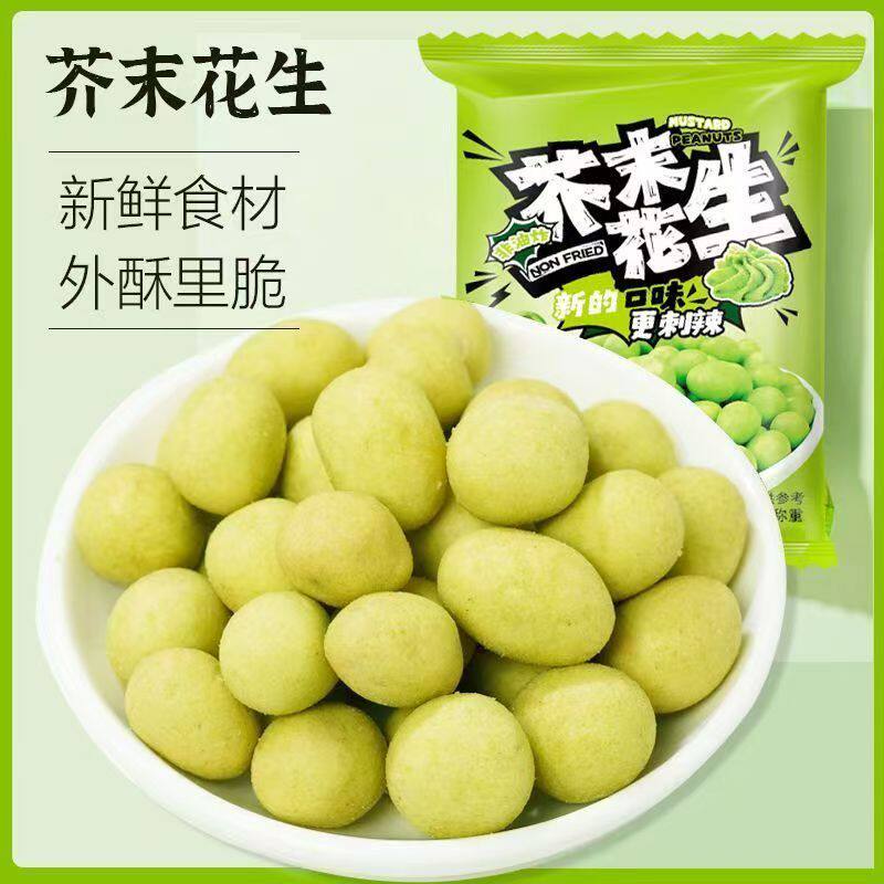 芥末花生仁坚果炒货年货香脆花生豆即食下酒菜小吃小零食小包装