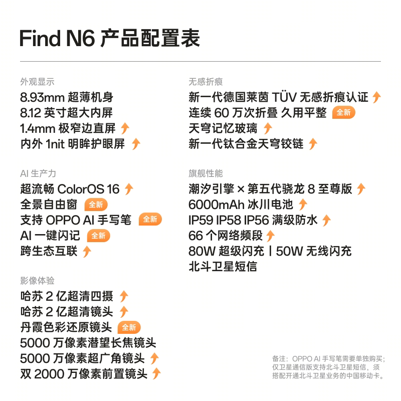 新品上市 OPPO Find N6 折叠旗舰手机无感折痕哈苏2亿超清四摄第五代骁龙8至尊版一加官方旗舰店oppo find n6